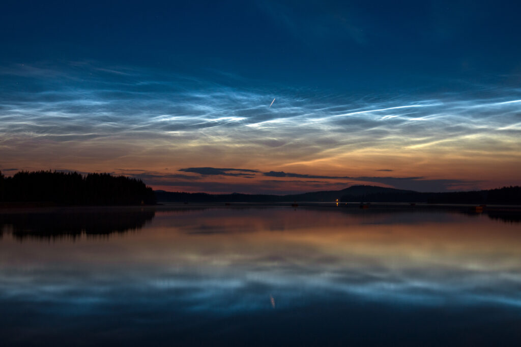 These are the highest clouds in Earth’s atmosphere, forming around 80 kilometres up in the mesosphere. They’re only visible during deep twilight in summer, when the Sun is below the horizon for you but still illuminating the very high-altitude ice crystals. The result is an electric blue, glowing pattern that looks almost artificial against a dark sky. If the air isn’t cold enough at that altitude, or the light angle isn’t exact, they simply don’t form.