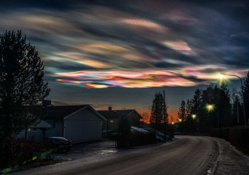 These form in extremely cold conditions high in the stratosphere near the poles. Temperatures have to drop far below freezing before they appear, which is why they’re so rare. When sunlight hits them at low angles, they can glow in bright pastel colours, almost like oil on water. They’re beautiful, but also linked to chemical reactions that affect the ozone layer.