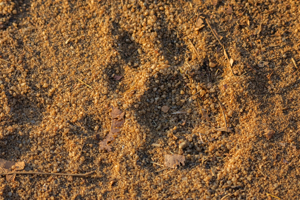 Tiger tracks are big. Much bigger than a dog’s. The front paw can be around the size of a grown man’s hand, sometimes wider. You’ll usually see four toes and a large padded heel mark. Unlike dogs, tigers don’t leave claw marks in their prints because their claws retract. That’s one of the clearest differences.