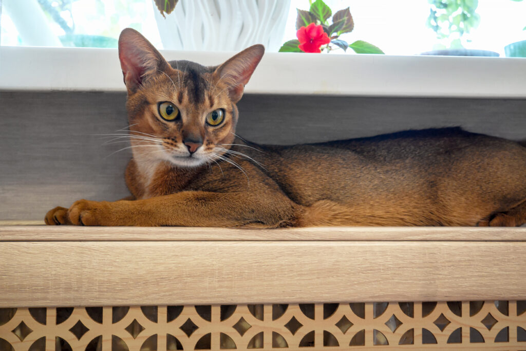An Abyssinian’s mission in life is to reach the highest point in any room and watch everything from up there. They’ll scale bookcases, leap onto fridges, and perch on door frames just to get that extra bit of height. No shelf is too high, no surface too dodgy. You’ll regularly find yours sitting somewhere completely ridiculous, staring down at everything happening below them.
