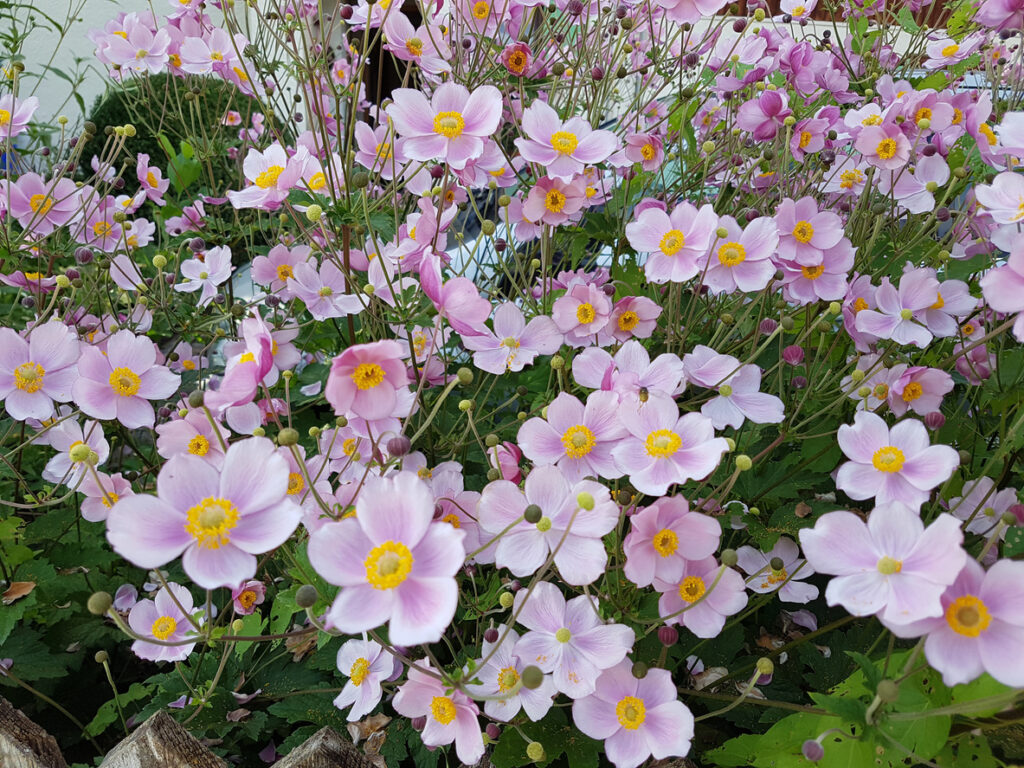 Japanese anemones take a year or two to settle in, then they’re off, spreading steadily and flowering their heads off from late summer into autumn. They’re perfect for filling awkward spots in partial shade and provide flowers when most other things have finished. The pink or white blooms float above attractive foliage on tall stems that don’t need staking.