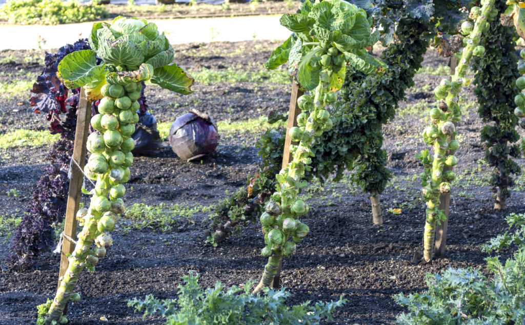 Brussels sprouts were bred in Belgium in the Middle Ages by selecting cabbage plants with large, edible leaf buds. Over generations, those buds became the tiny cabbages we see stacked along tall stalks today. Weird, right?