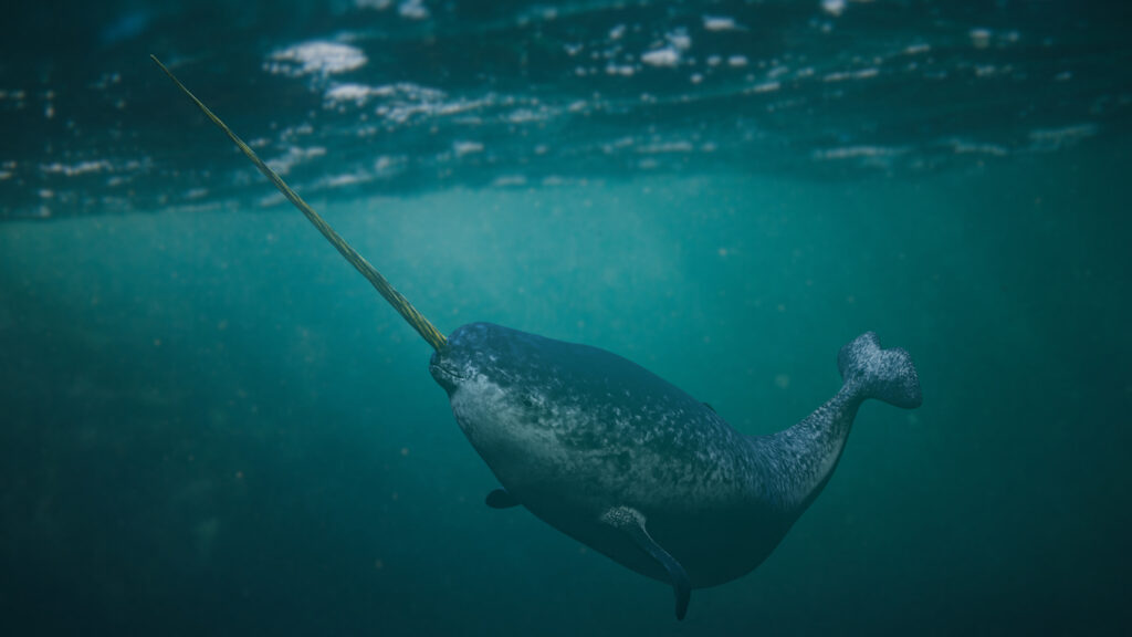 Because light barely reaches the depths they inhabit, narwhals rely on echolocation, sending out a series of rapid clicks and listening for the echoes that bounce back. This allows them to “see” their surroundings through sound, helping them locate prey, communicate, and steer clear of hazards.