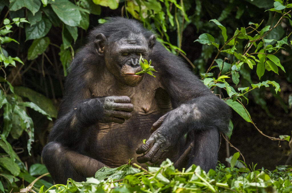 1. Chimpanzees swallow rough leaves whole.