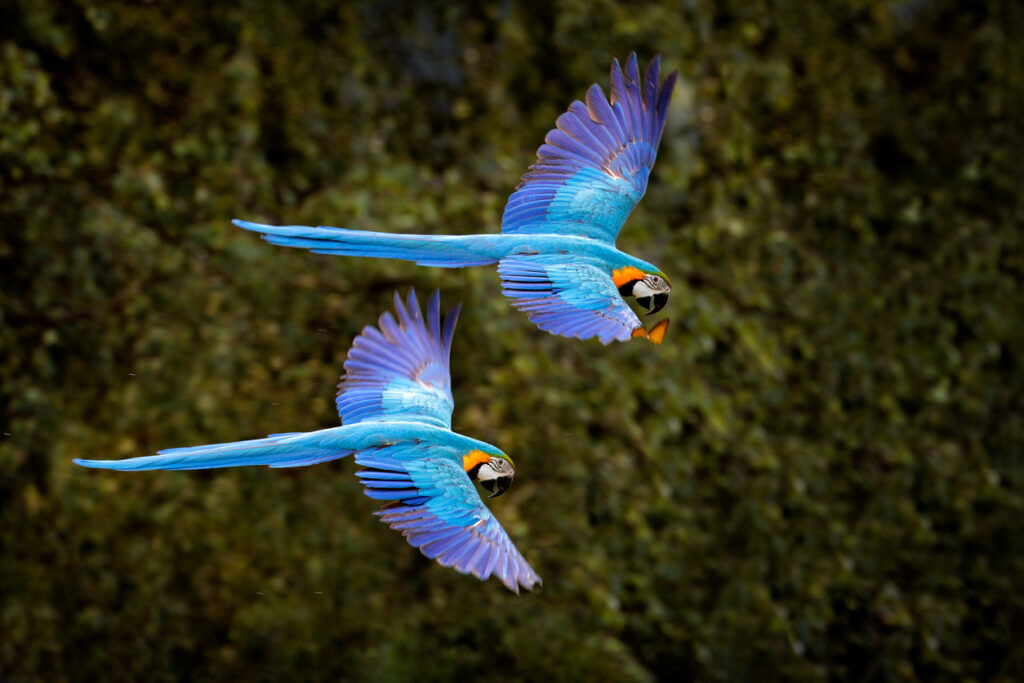 These birds take loyalty seriously. Once a blue macaw finds a partner, they stay together for life. They eat together, groom each other’s feathers, and even fly side by side everywhere they go. If one bird flies off, the other usually won’t be far behind. Their close bonds are one of the sweetest things about watching them in the wild.