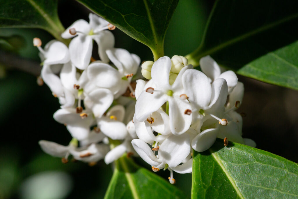 Osmanthus is a slow-growing evergreen shrub that produces tiny, almost invisible white flowers, but don’t be fooled. The scent is punchy and delicious, often compared to apricots or ripe peaches, and it lingers in the air surprisingly well. It’s tolerant of shade and works well as a background plant or low hedge. Since the blooms are so small, placing it near a path or doorway ensures the scent doesn’t go to waste. It’s an underrated gem that adds year-round value.