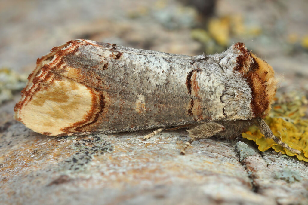 This one feels like nature’s practical joke. The buff-tip moth, when resting with its wings closed, looks exactly like a snapped twig. Its brownish-grey body has a pale tip that perfectly mimics where wood might splinter. It’s the kind of camouflage that’s easy to walk past a hundred times, especially on fences, logs, or low branches. A reminder that moths aren’t just drawn to lightbulbs; they’ve got some serious survival tricks up their sleeves.
