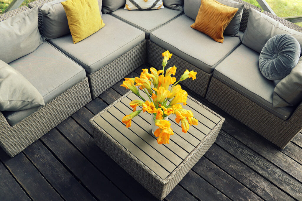 Wicker or rattan can look great, but might need more sheltering or indoor storage in winter. Wooden furniture will last well if you’re willing to treat it once a year, but if you want something that can stay out all year with minimal fuss, go for rust-proof and rot-resistant materials.