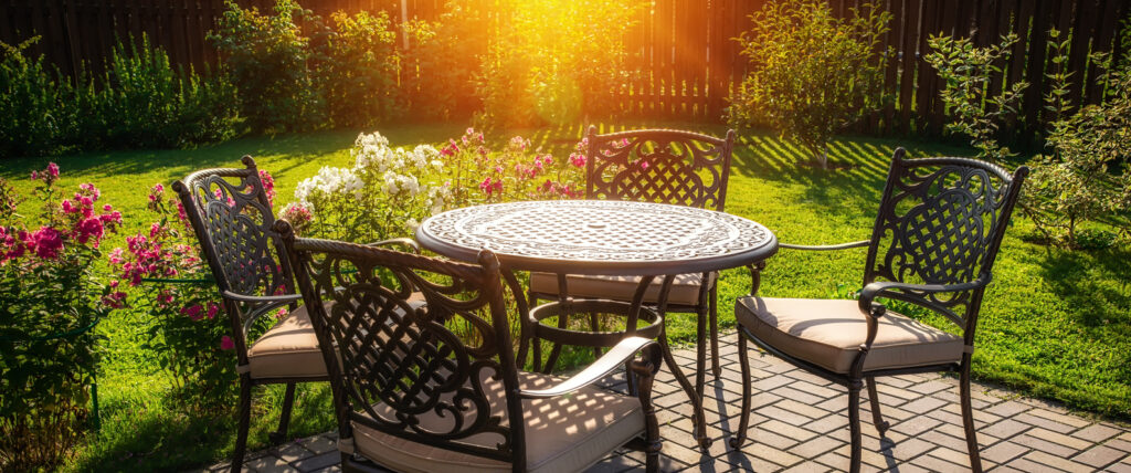 Some garden furniture needs more TLC than others. Wooden sets often need to be treated or re-oiled once a year. Metal may need checking for rust spots. If that sounds like a chore, choose low-maintenance materials that don’t need constant attention to stay looking good.