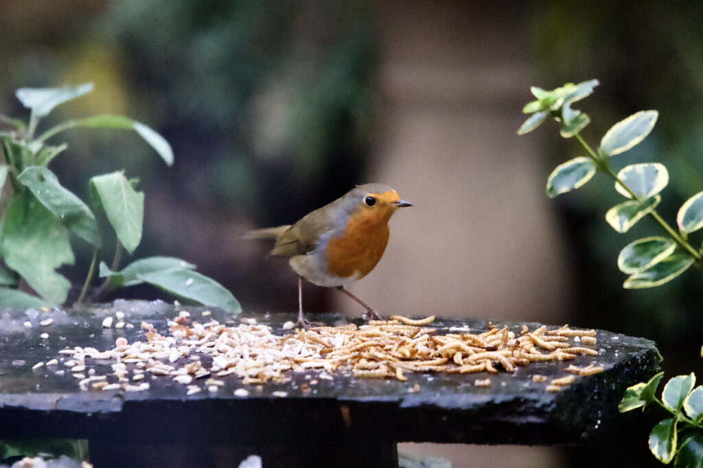 Birds like to eat where they feel sheltered from sudden gusts and open skies. Position your table near hedges, shrubs, or climbing plants that aren’t too dense but offer some windbreak and quick access to cover. If your garden is very open, you might add a simple roof or tiered cover over the table. That makes it more appealing, especially in bad weather because birds can dash in, feed, and retreat quickly.