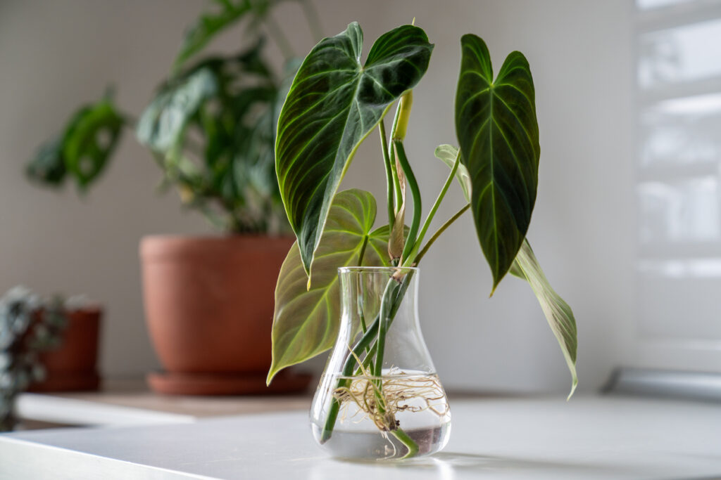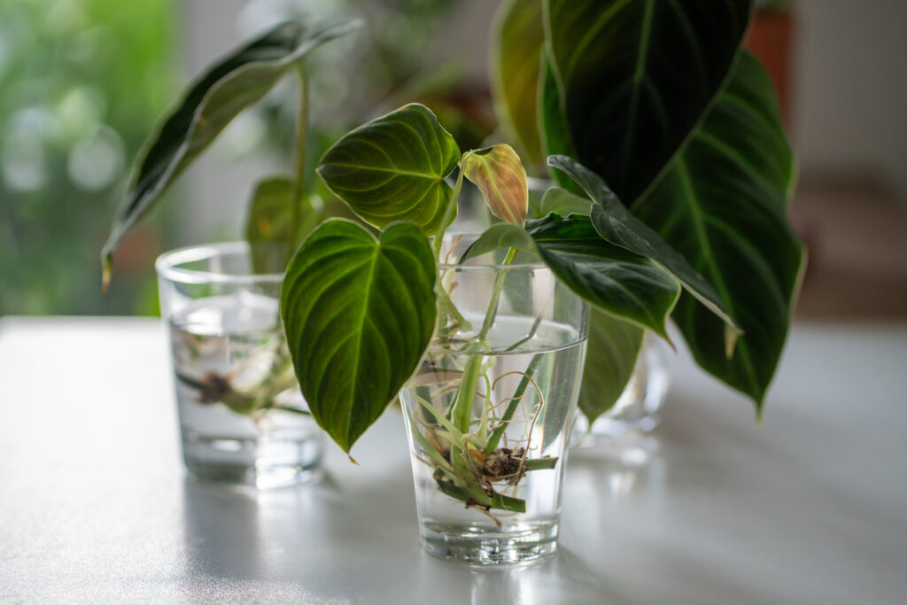 For loads of common houseplants, water is all you need to get started. Take a clean pair of scissors or snips, cut a healthy stem just below a node (that’s the bumpy bit where leaves grow from), and pop it in a jar or glass of water. Then, genuinely, just wait. Pothos, philodendrons, monsteras, and tradescantias are all brilliant for this because they practically root themselves.