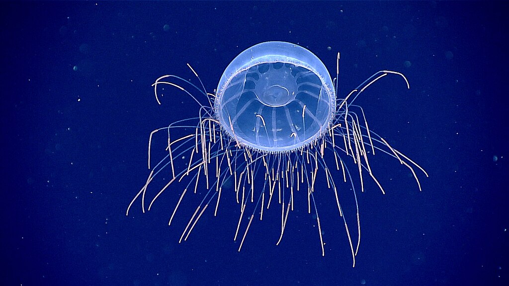 Often mistaken for jellyfish, comb jellies are even weirder. They use rows of tiny beating cilia, called combs, to swim, and when light hits them, it creates a rainbow shimmer across their bodies. It looks like they’re lit from the inside. Unlike jellyfish, they don’t sting. Instead, they trap prey with sticky cells. Some species even glow in the dark. They’re living disco balls floating through the deep, and they’ve been around for hundreds of millions of years.