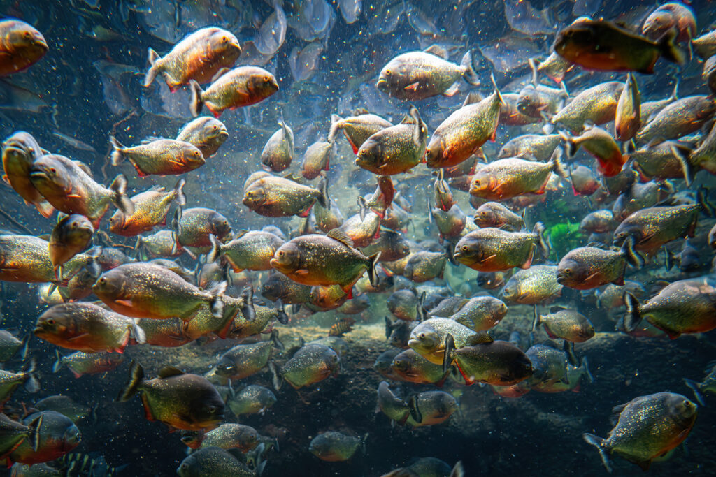 While their reputation is somewhat exaggerated by films, piranhas in large groups absolutely will swarm injured or struggling animals and reduce them to skeletons through coordinated attacks. Their teeth are razor-sharp and interlock perfectly for shearing flesh, and they replace them throughout their lives. When blood hits the water and a feeding frenzy starts, individual piranhas become part of a collective feeding machine that’s genuinely terrifying to witness. Most of the time, they’re scavengers, but when opportunity arises or food is scarce, they’ll attack living prey with shocking efficiency.