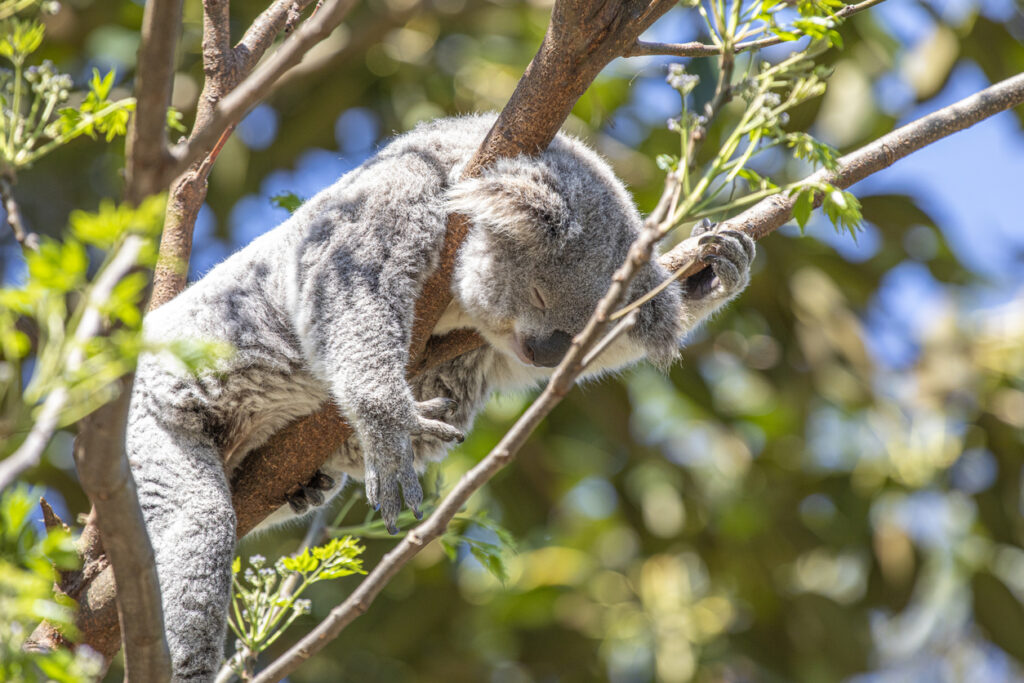 Koalas are asleep or resting for up to 22 hours a day. When they’re awake, they’re mostly just sitting there eating, occasionally moving between trees or screaming at each other. They can’t afford the energy to do anything else because their diet is so appalling. They’ve basically evolved to be as inactive as possible.