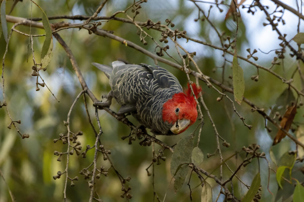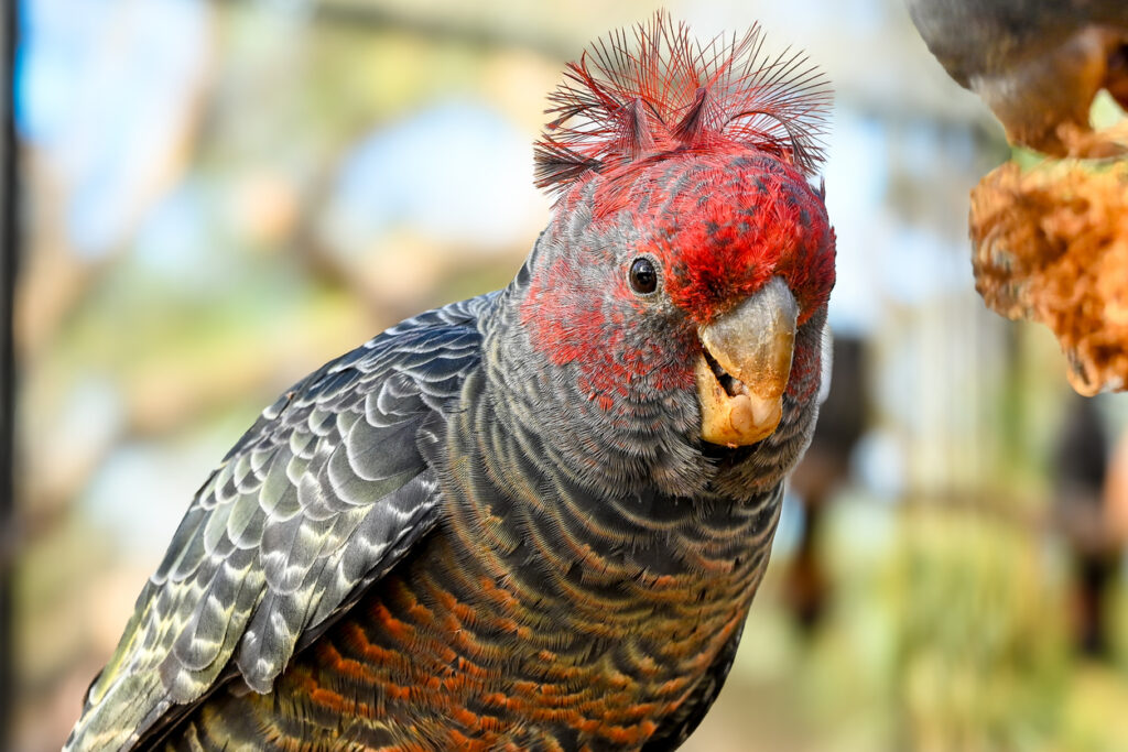 If you ever find yourself in the forests of south-eastern Australia and hear a sound that resembles a rusty gate swinging in the wind or a wine cork being pulled from a bottle, you’ve likely found the gang-gang Cockatoo.