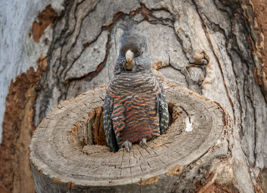 Gang-gang chicks stay in the nest for several weeks and continue to rely on their parents after fledging. The parents invest a lot of energy into raising just one or two young, and that slow reproductive pace means populations recover slowly from decline. Every successful nest really matters for the species’ future.