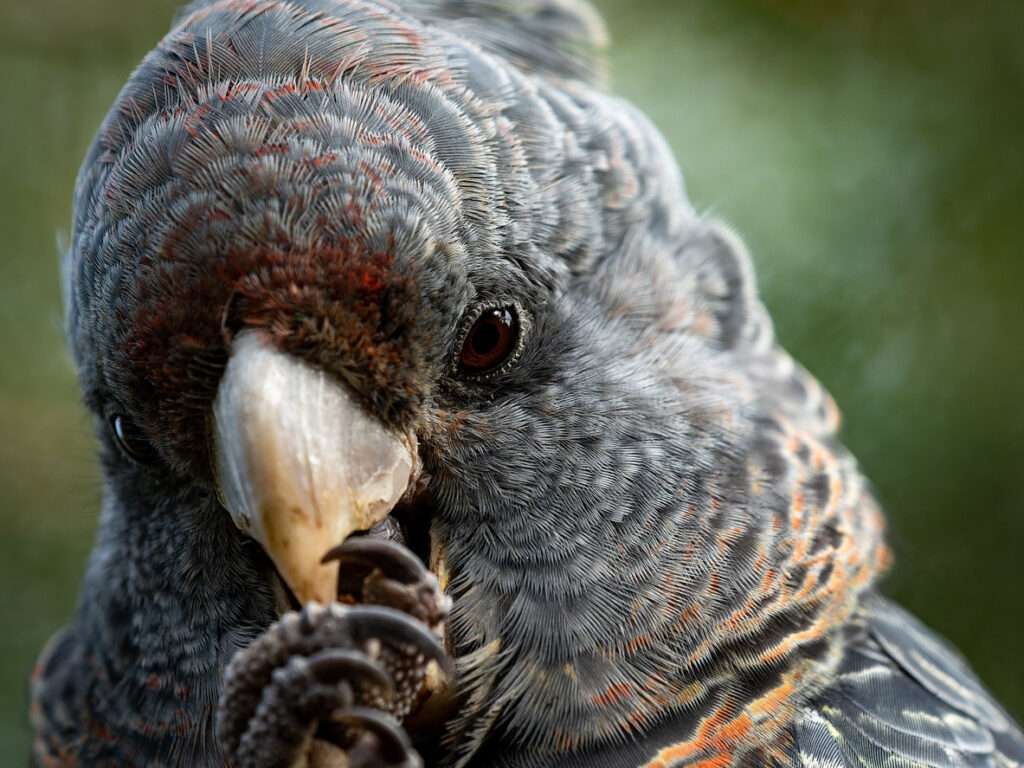 Unlike some cockatoos that fling their crests up at every opportunity, the gang-gang uses its crest sparingly. It lifts gently when the bird is alert, curious, or mildly excited rather than constantly flaring. This gives the bird a calmer, almost thoughtful look. The crest feels like punctuation rather than a full stop, adding emphasis to mood rather than stealing the show.