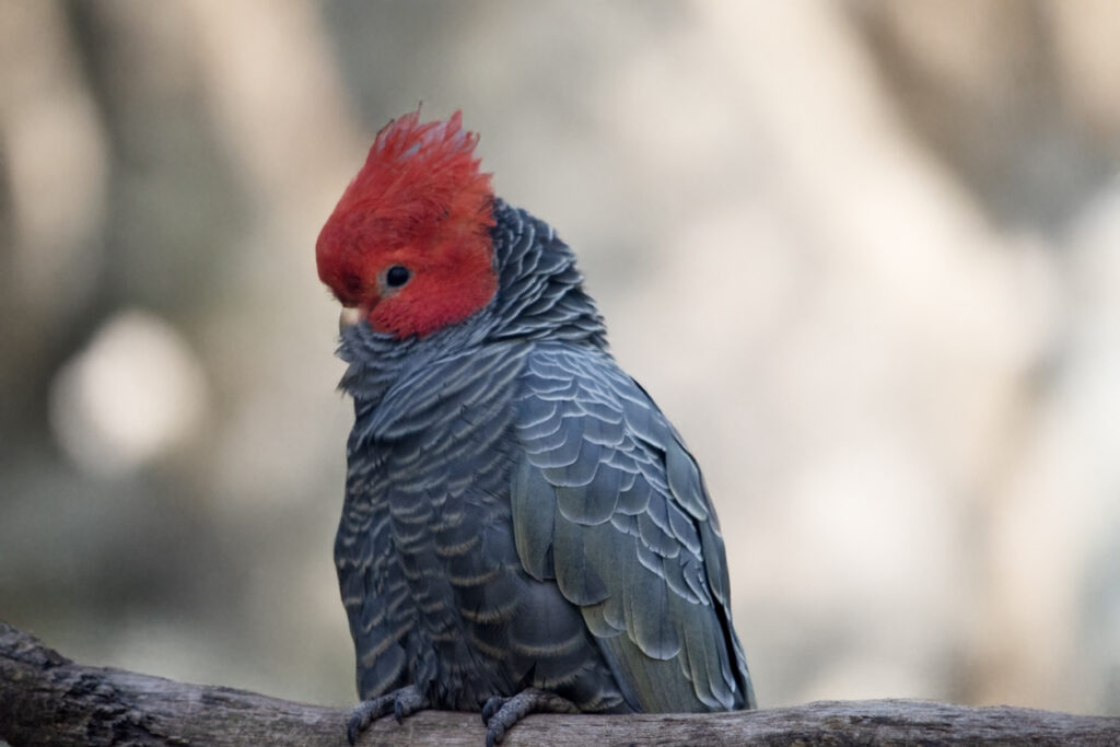 The most famous feature of the gang-gang cockatoo is the male’s bright red head and crest, which looks almost painted on against the grey body. It’s bold without being flashy, standing out just enough to catch the eye without overwhelming the bird. Females don’t have the red crest at all. Instead, they keep a softer grey head with subtle barring on the chest, which often surprises people seeing the species for the first time. That difference makes it one of the easiest cockatoos to tell apart by biological sex.