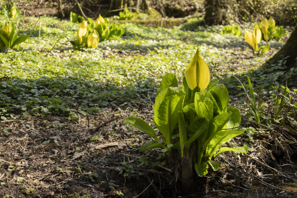 Unlike its eastern cousin, the western skunk cabbage leans more towards the smell of animal waste mixed with rot. The unpleasant odour travels well in damp woodland, which is exactly the kind of environment where the plant thrives.