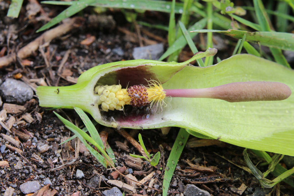 This swamp-dwelling plant releases a foul odour in early spring. While not quite as overpowering as a corpse flower, the smell of decay is enough to bring in beetles and flies that are among the few pollinators active so early in the year.
