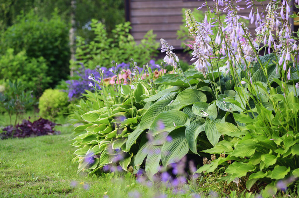 Hostas bring bold foliage.