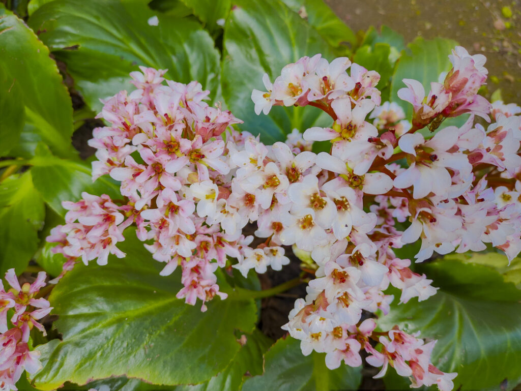 Bergenia, sometimes called elephant’s ears due to its chunky leaves, is a tough evergreen that brings colour and texture to even the gloomiest corners. In spring, it sends up pink or red flower stalks, which stand out beautifully against the foliage. It thrives in most types of shade, and is particularly good in dry areas where other plants might struggle. The leaves also turn red or bronze in colder months, giving your shady border interest through winter.