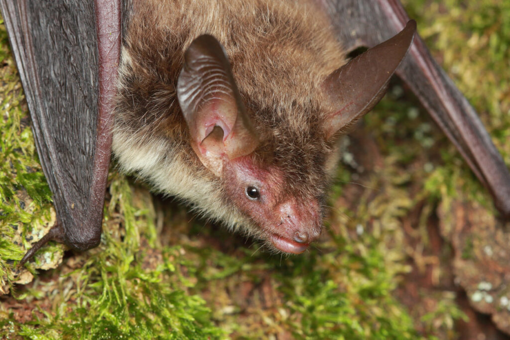 The Bechstein’s bat was once the most common bat species in Britain. With long ears, a pink face and brown fur, this species is a woodland specialist, relying on ancient woods and trees in particular. Sadly, ancient woodland destruction has reduced this species population considerably, and there are now thought to be less than 10 breeding locations in England and Wales.