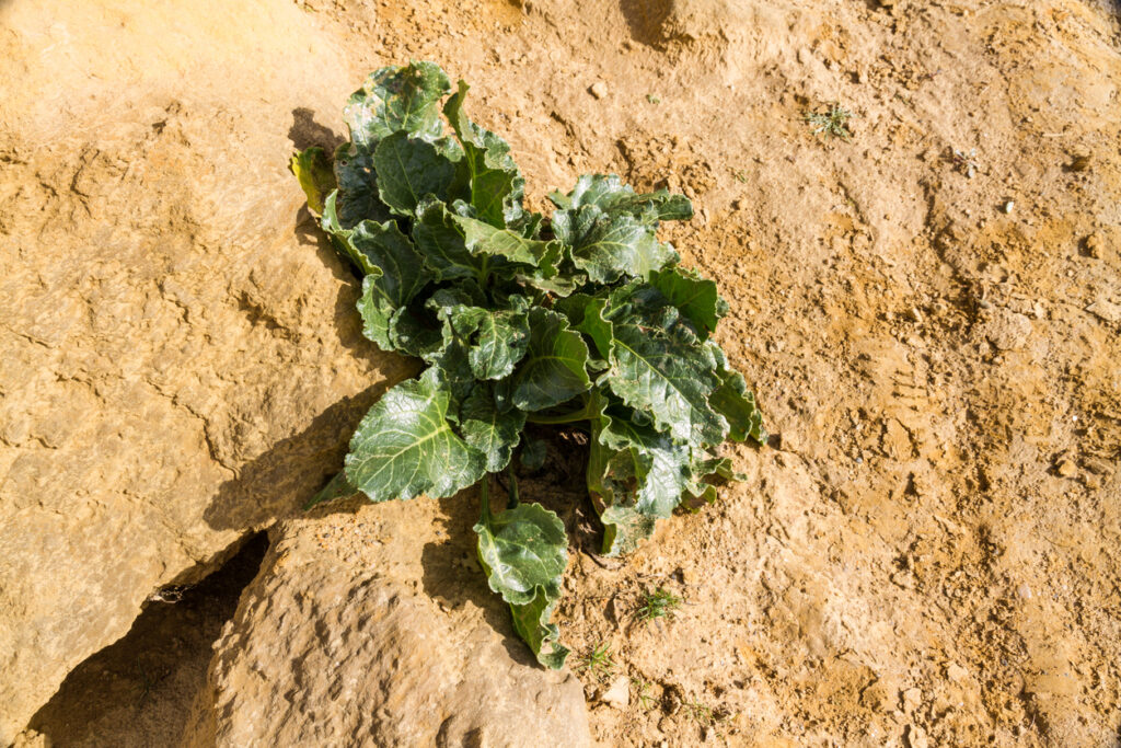Wild cabbage, the ancestor of broccoli, kale, and cauliflower, once thrived along Britain’s rocky shorelines. Its thick leaves and salt tolerance helped it survive in harsh coastal conditions, making it a staple for foragers before farming took hold.