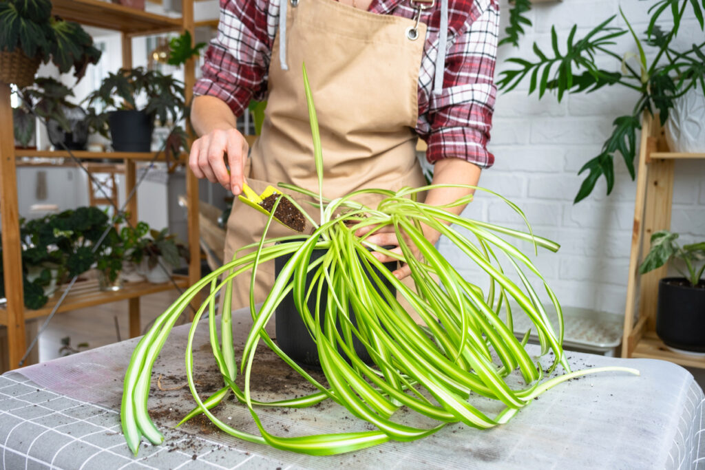 Spider plants have shallow roots that spread outwards more than they dig deep. If you’re repotting, go for a container that’s a bit wider than the one it came in, not taller. That space lets the roots branch out properly, which supports more foliage growth above the soil. A narrow, deep pot can leave the plant feeling cramped and unstable. When it has room to breathe sideways, it responds with stronger, more balanced top growth, meaning a fuller, healthier look overall.