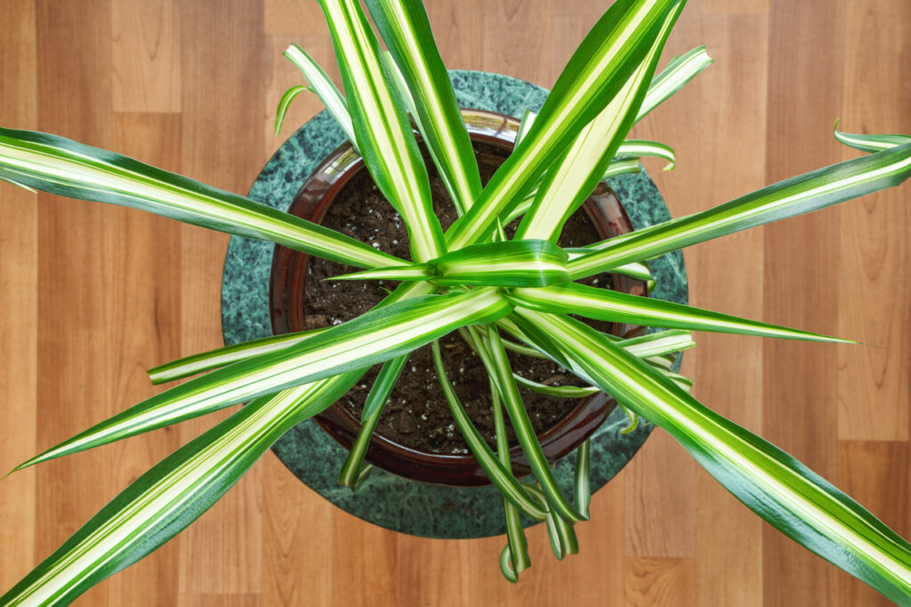 Spider plants lean towards the light, so if yours is sitting in the same position for months, it might be growing more heavily on one side. Rotating it every week or two helps even things out and encourages symmetrical growth. This also prevents the underside from going bare, which is key if you want a pot that looks good from all angles, not just the one facing the window.