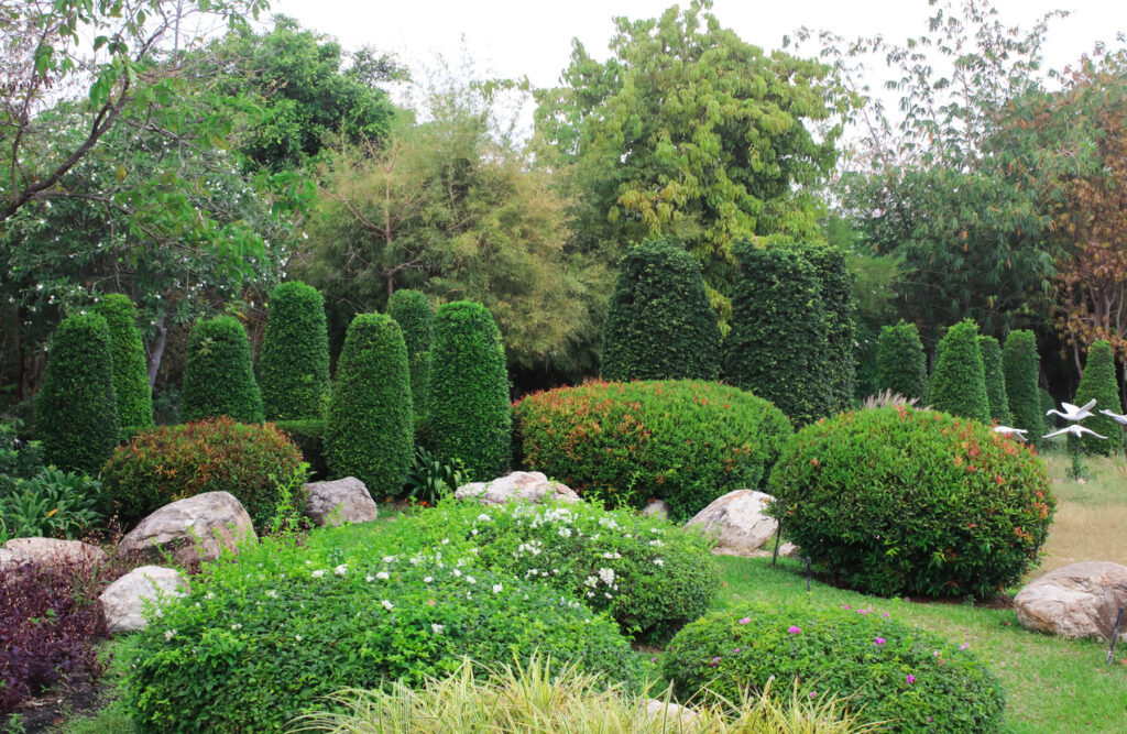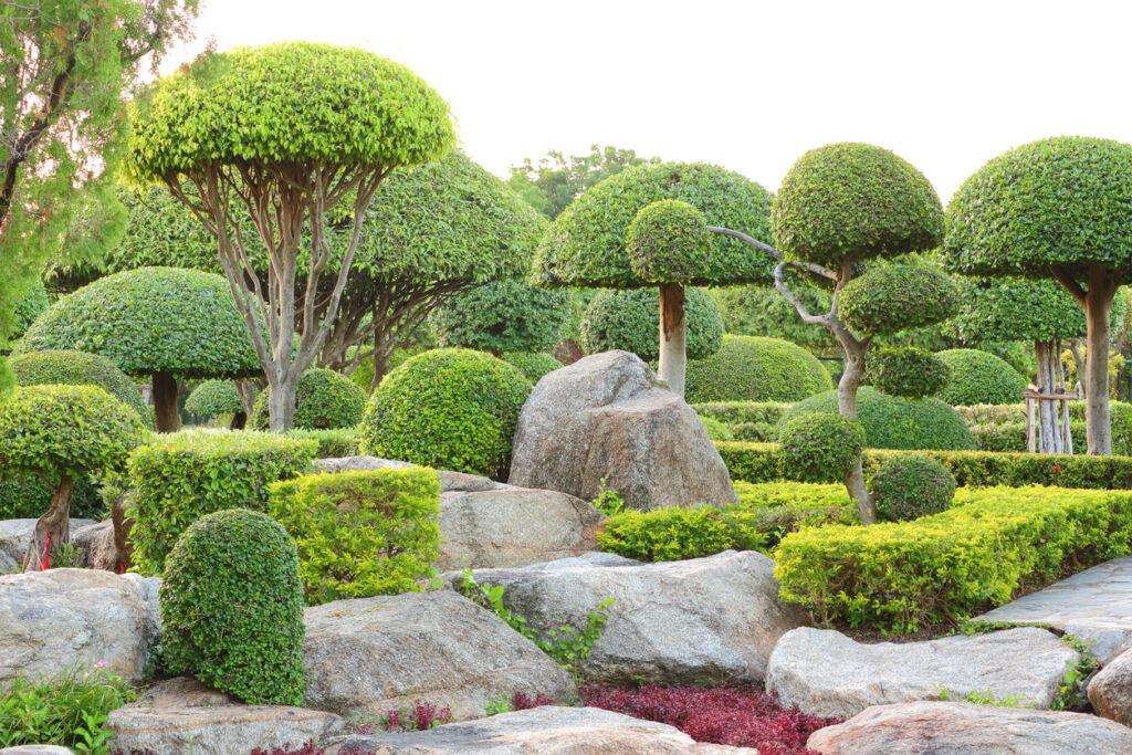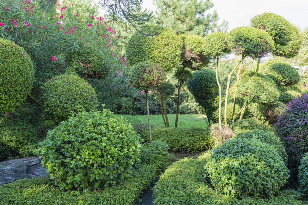Ball-shaped shrubs are pleasing to the eye because they’re symmetrical, tidy, and easy to layer. A row of clipped balls along a path or in pots can bring instant structure and elegance. They’re also incredibly versatile, looking just as good in cottage gardens as in minimalist ones. Once you get the hang of pruning them, they’re surprisingly easy to keep in shape.