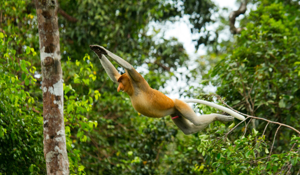 Proboscis monkeys are found only in Borneo, and their huge noses set them apart from just about every other primate. Evolution often drives species in unique directions based on local pressures, and in this case, the result is a nose you’d never mistake for anything else. The nose helps define their place in the ecological landscape, making them both visually and behaviourally distinct. In terms of evolution, it’s a clear marker of their niche, just like the gibbon’s arms or the orangutan’s cheeks.