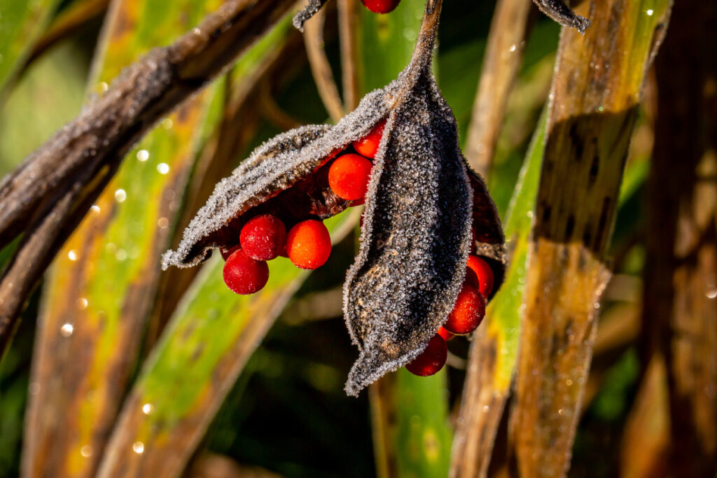 It produces bright orange seed pods that stand out in autumn. Removing them threatens both the plant and the wildlife that rely on its berries for food.
